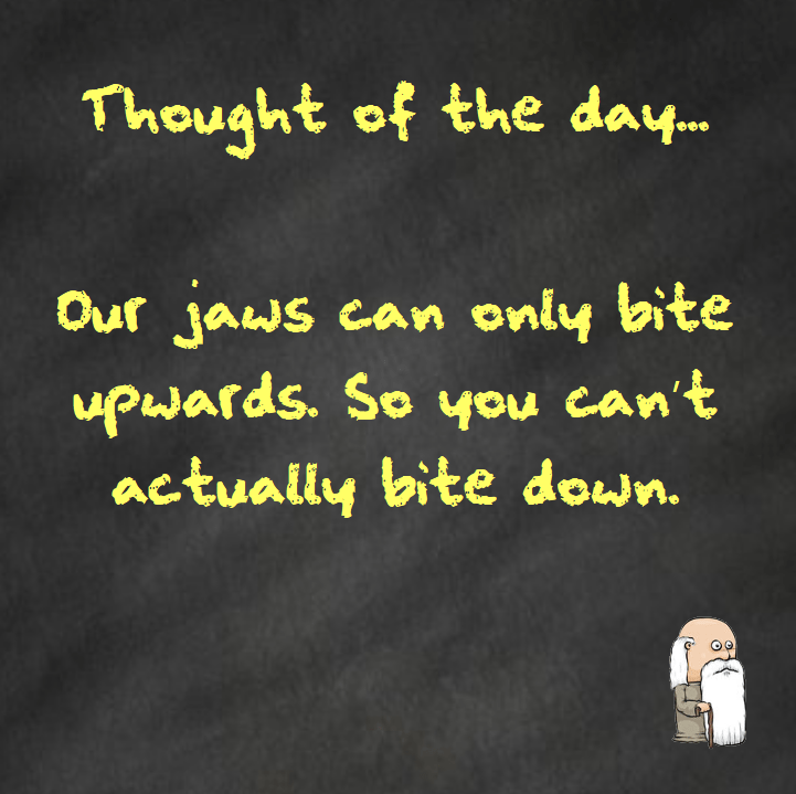 Our jaws can only bite upwards. So you can’t actually bite down.