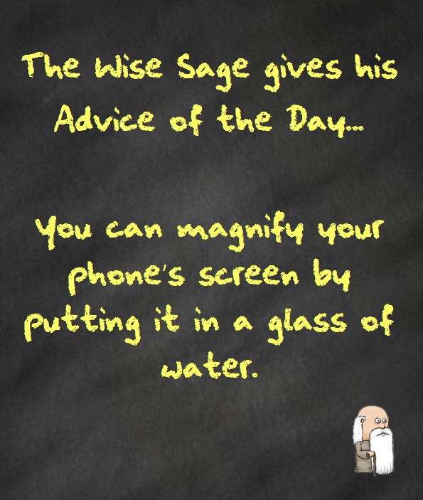 This advice comes with a tongue-in-cheek warning! Putting your phone in a glass of water is not good advice for magnifying the screen. In fact, it can be extremely damaging to your phone.