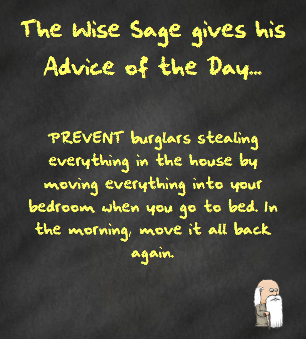 PREVENT burglars stealing everything in the house by moving everything into your bedroom when you go to bed. In the morning, move it all back again.