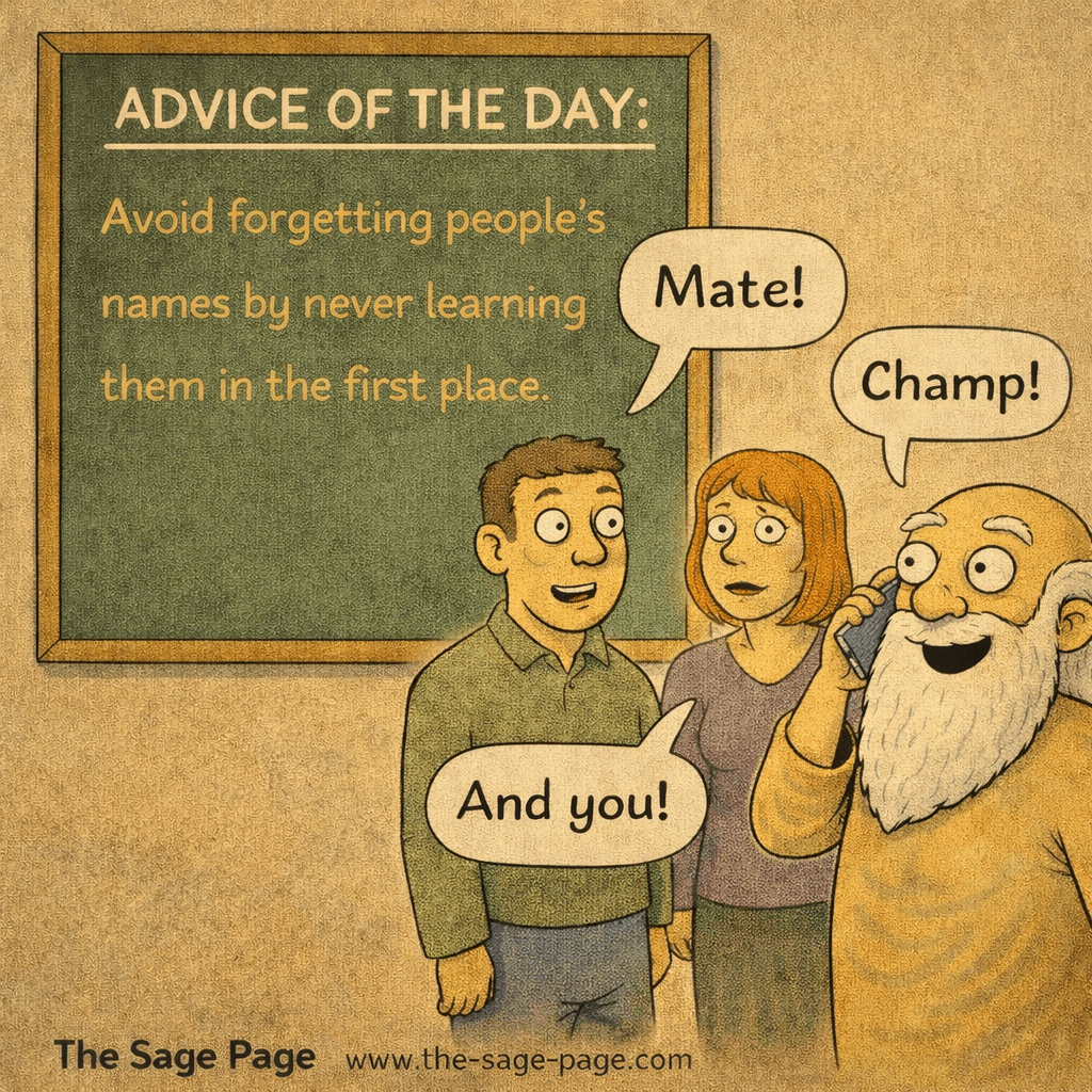Remembering names can be one of life’s most awkward challenges. You meet someone, they tell you their name, and within seconds it vanishes into the same mysterious void as where you left your keys. The Wise Sage recommends removing the problem entirely.