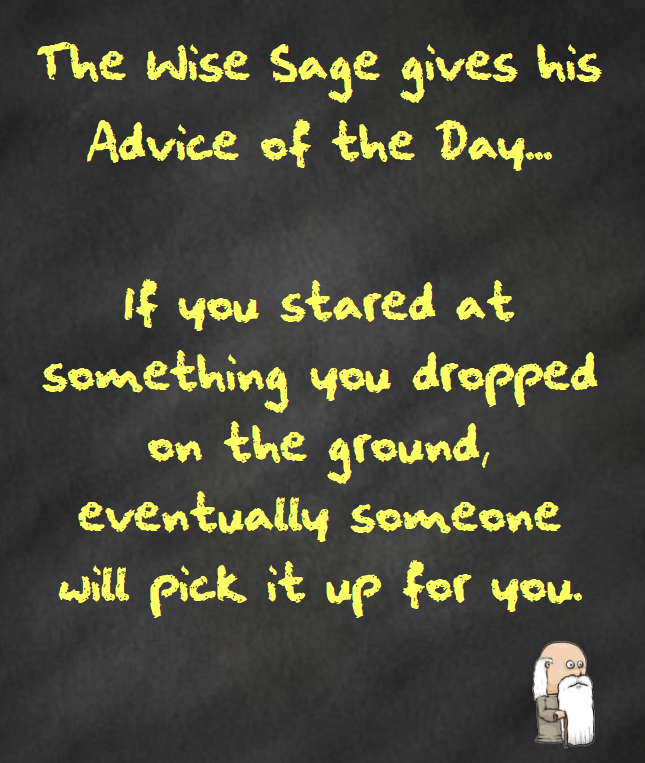 If you stared at something you dropped on the ground, eventually someone will pick it up for you. I would love this to be true but I believe it is a myth! Looking at something dropped on the ground will not magically make someone pick it up for you. In fact, many people believe thatContinue reading “Advice of the Day: Staring”