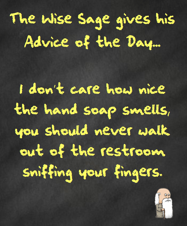 I don’t care how nice the hand soap smells, you should never walk out of the restroom sniffing your fingers. It is generally not considered polite or appropriate to sniff your fingers in public, regardless of the context. Sniffing your fingers can be perceived as unhygienic, rude, or inappropriate, and may make other people uncomfortableContinue reading “Advice of the Day: Sniffing”
