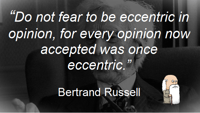 “Do not fear to be eccentric in opinion, for every opinion now accepted was once eccentric.” Bertrand Russell Bertrand Russell is perhaps my favourite of the “modern-day” philosophers as he made philosophy available to a wide audience through his books, lectures, and broadcasts. This quote will surely resonate with all the scientists, academics, inventors, andContinue reading “Quote of the Day: Opinion”