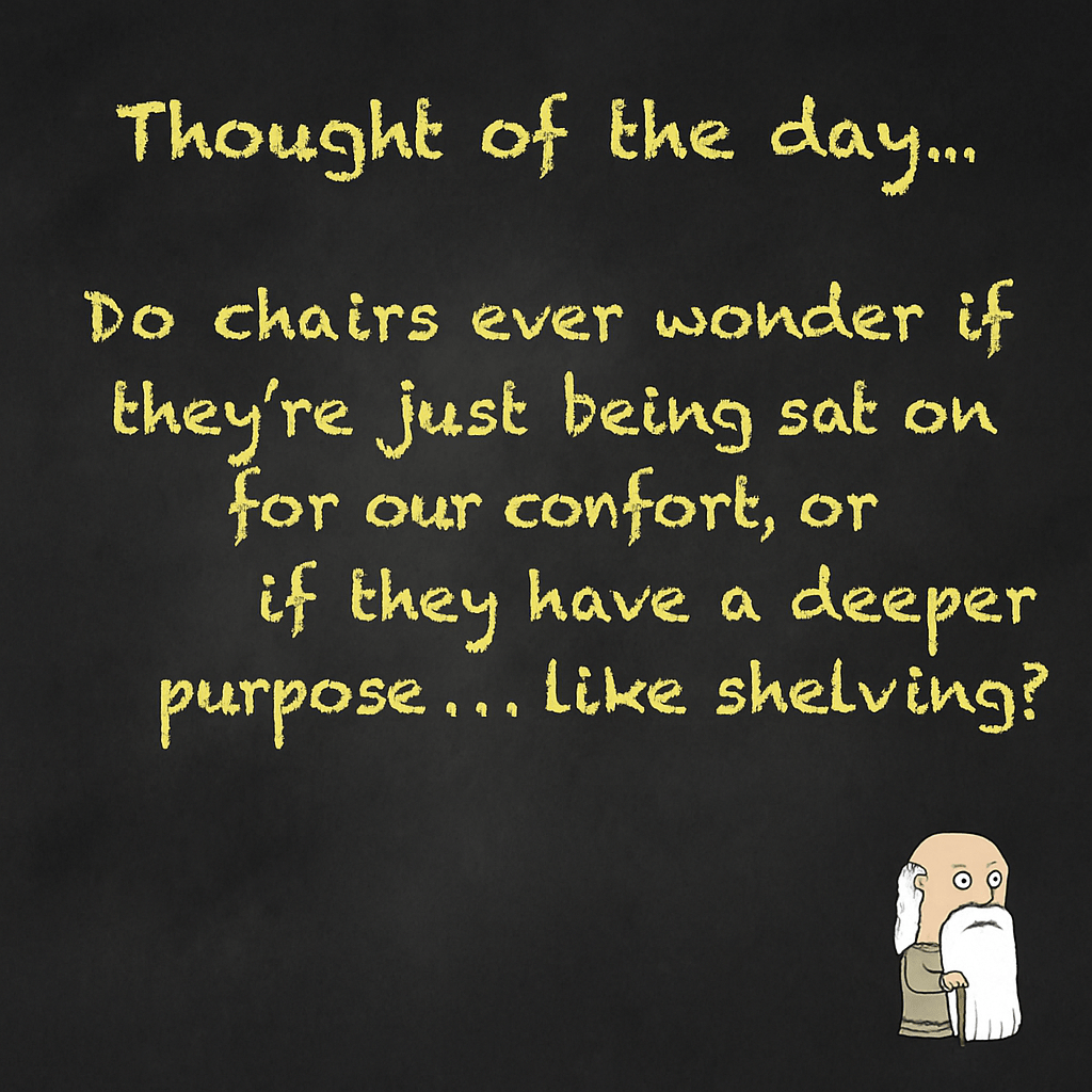 Do chairs have dreams? The Sage wonders if furniture questions its purpose. A whimsical thought about comfort, destiny, and the nobility of shelving.